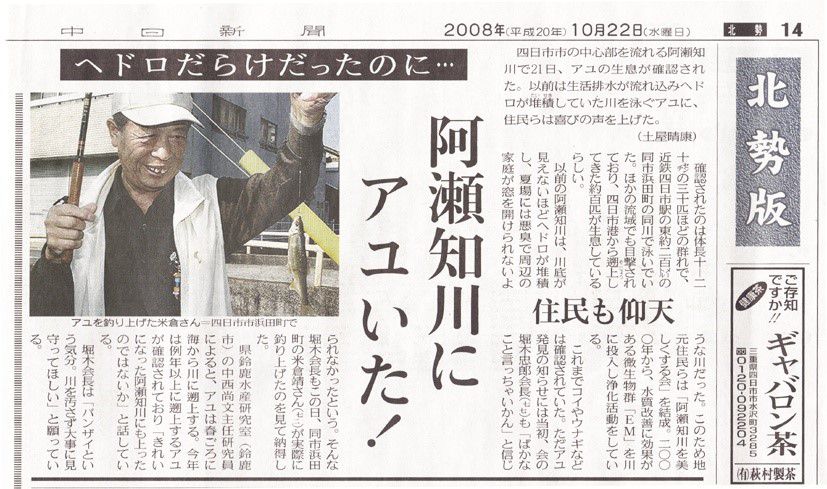 2008年10月22日,春日?qǐng)?bào)關(guān)于Ayu魚(yú)回到Asachi河的文章